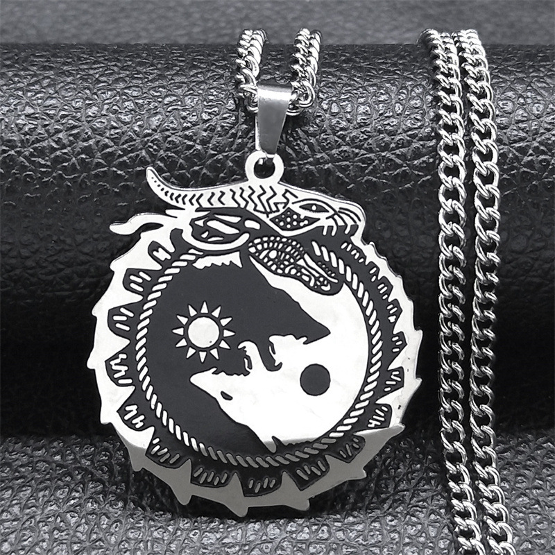 クロスボーダー陰陽八卦龍狼動物ネックレスステンレス太極日月ステンレスネックレスn2833
