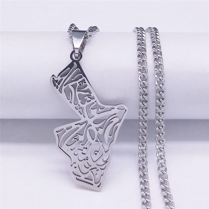 ステンレス鋼ヨルダン地図ネックレスシルバーペルシャ文字ネックレスジュエリーn7032