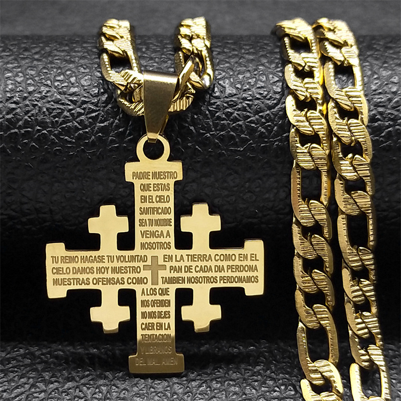 エルサレムのカントニの十字のネックレスの男性の声明のステンレスの金色のネックレス