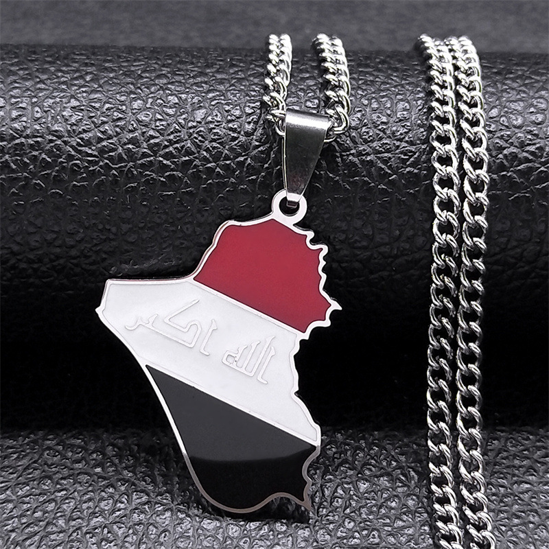 イラク共和国地図国旗ペンダントネックレス女性男性用ステンレスシルバー国慶節アクセサリーnx
