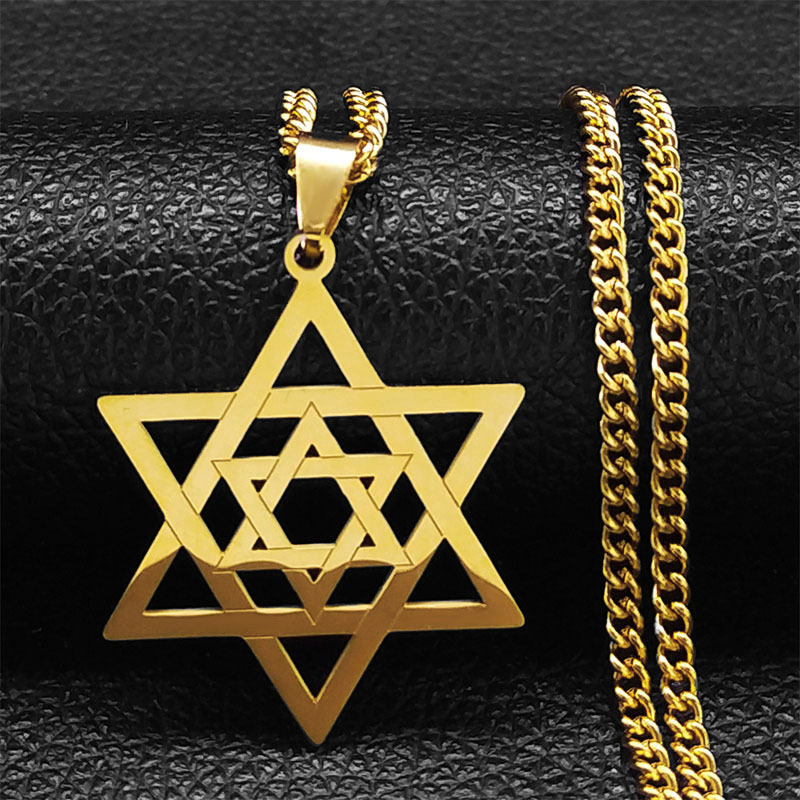 ヒップホップデビッド盾六角形ペンダントネックレス男性ファッションステンレス鋼スキューバチェーンネックレス宗教ジュエリー