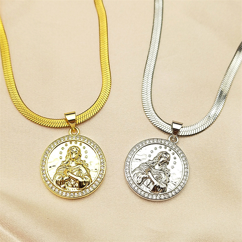 欧米の新型ヒップホップHIPHOP宗教装飾品ステンレス鋳造真空金メッキジルコン聖人ペンダントネックレス