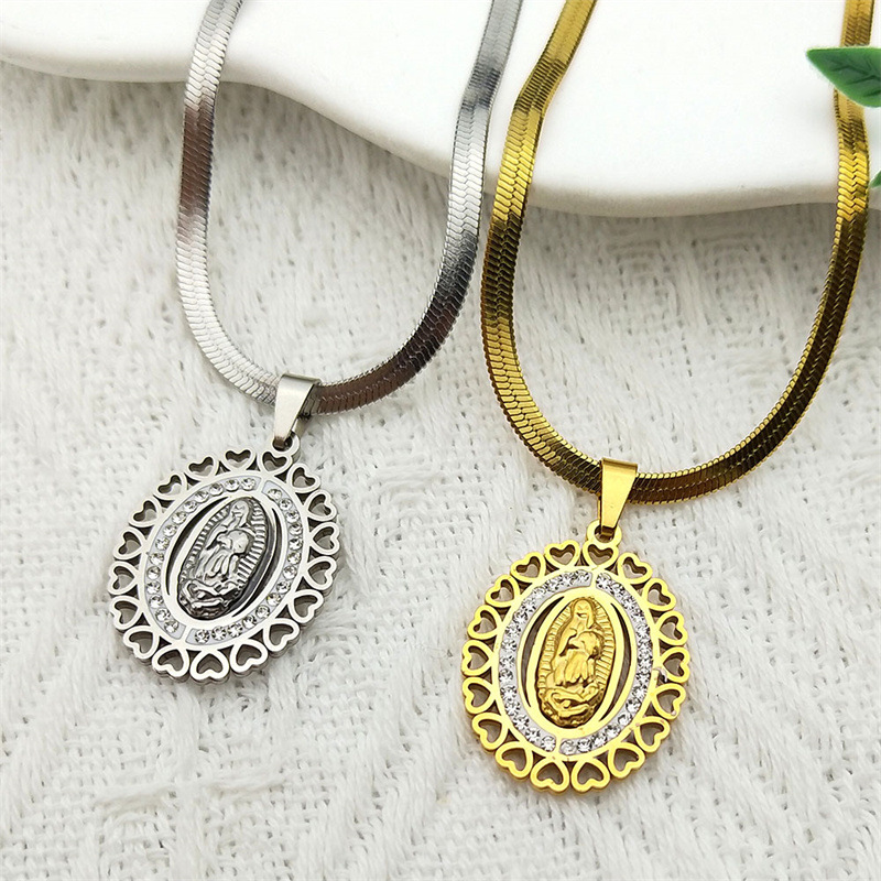 クロスボーダーカラークリスタルネックレス女性男性ステンレス鋼ゴールドカラーグアダルーペ聖母ネックレスジュエリーアクセサリー