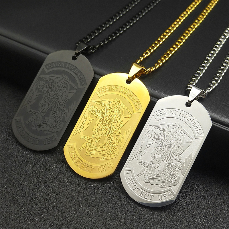 クロスボーダー新型大天使マイケル勲章ステンレスペンダント高級感中性風チタン鋼ネックレスアクセサリー