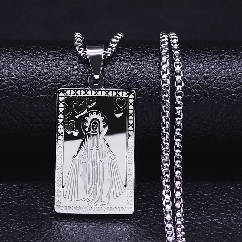 クロスボーダーレトロスクエアタグマリアの祈りネックレスレディースメンズステンレススチールゴールデンメダルネックレス