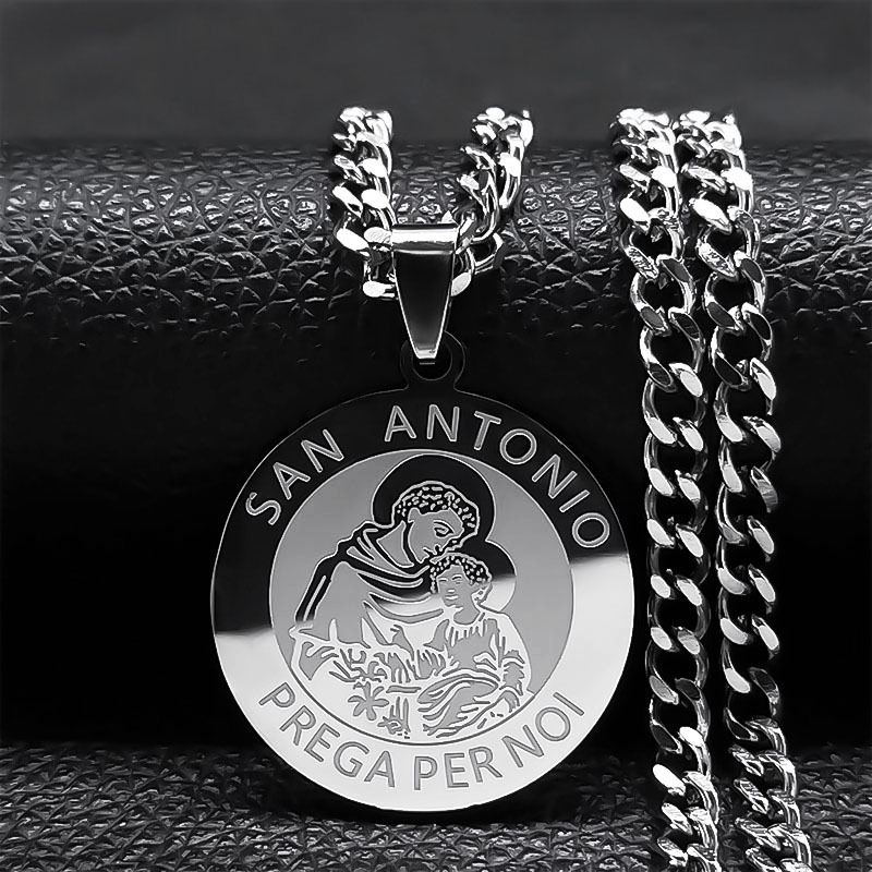 サンタ・アントニオ アメリカ大天使の祈り ラウンド ステンレス鋼ネックレス シルバーカラー ジュエリー N2314 サークルペンダント