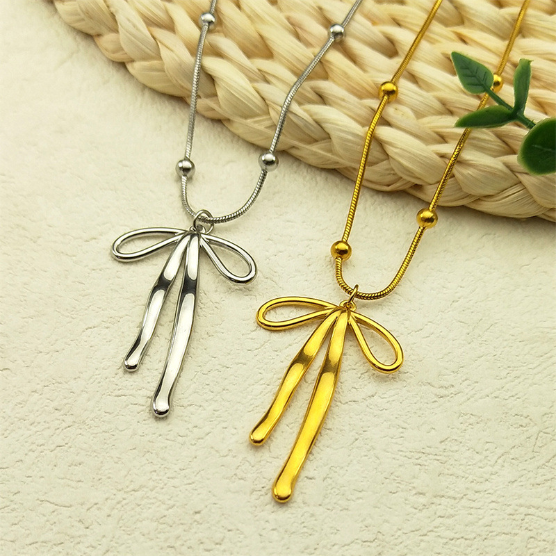 欧米の18k金メッキステンレス蝶結びネックレス女性ins風個性手磨き蝶結び鎖