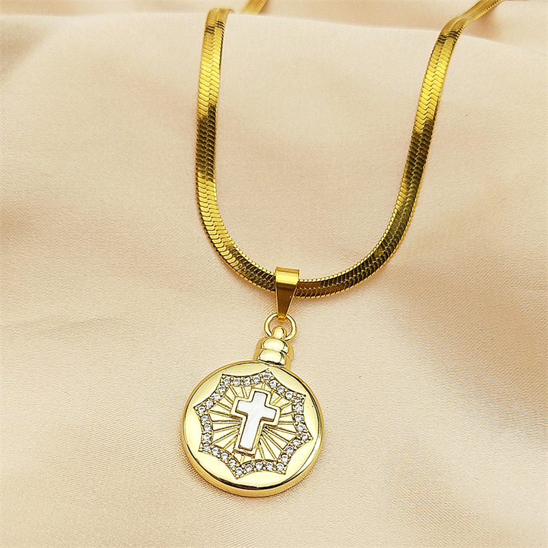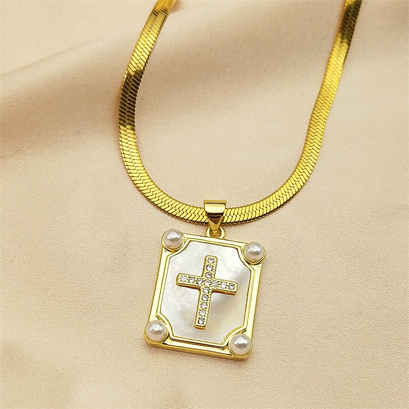 シェル銅金メッキマリアクロス宗教ペンダントネックレス色保持 diy アクセサリー鎖骨チェーンペンダント