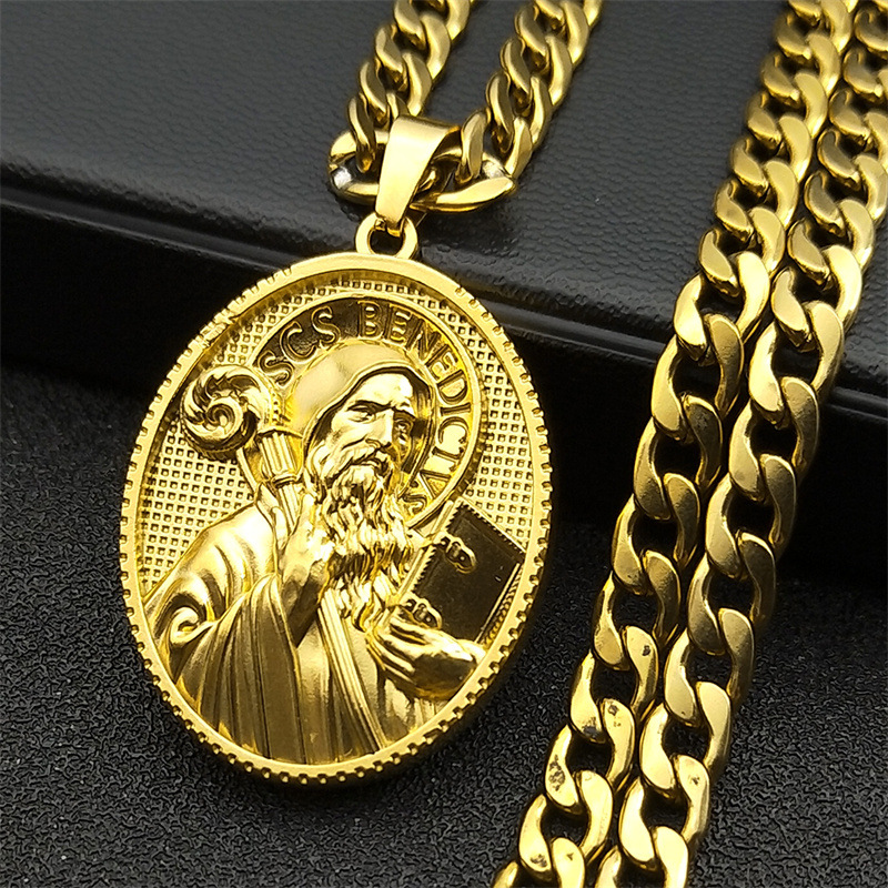 国境を越えた貿易トレンドポートレートアクセサリーペンダントパンクスタイルレトロマリアチタン鋼メンズラウンドペンダント