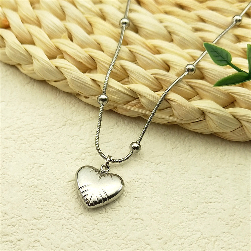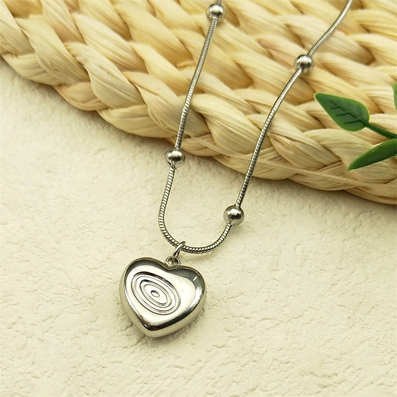 クロスボーダーのレトロなストライプの愛のネックレスins女性の卸売りの個性の小さい大衆の鎖の鎖のチタン鋼のハート型の装飾品の装飾品