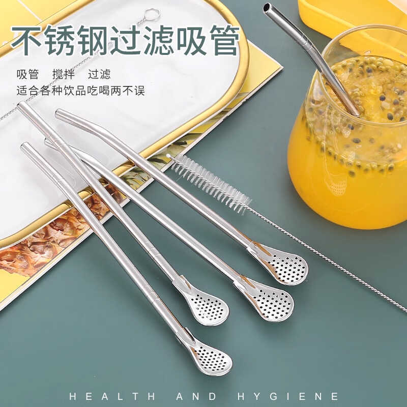 延長ストロースプーンステンレスミルクティー撹拌フィルター取り外し可能な一体両用環境保護粗金属非使い捨て