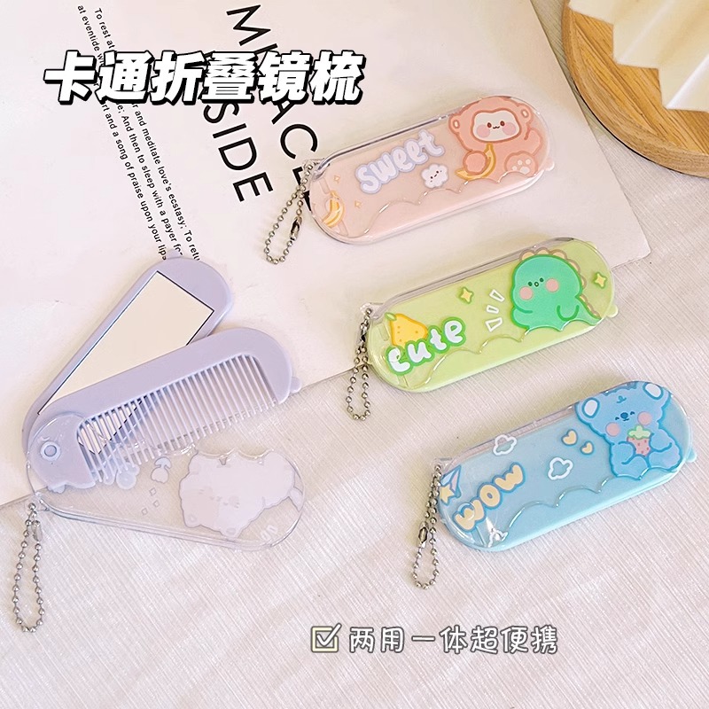 櫛付きの小さな鏡セット屋外携帯鏡櫛一体セット折り畳み化粧鏡ミニ円形鏡