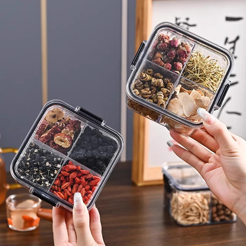 密封缶貯蔵タンク茶角四分格養生花茶包装収納タンクプラスチック五穀雑穀食品タンク