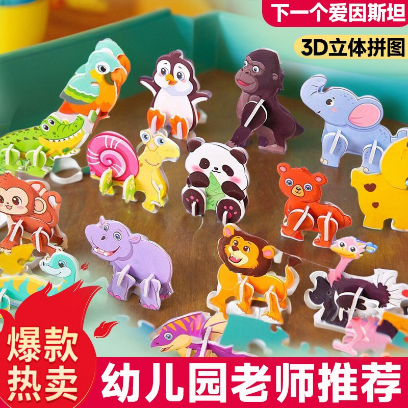 恐竜動物飛行機趣味3d立体動物パズル手作り組み立て模型積み木子供知育玩具カード