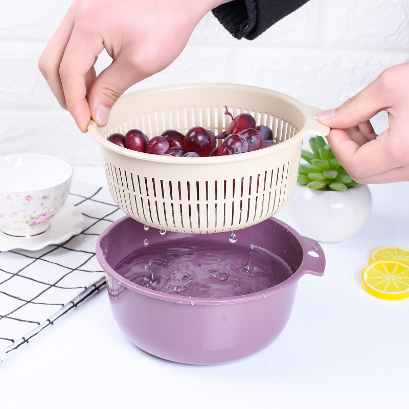 二重のプラスチックの水たまりかごの野菜を洗うたらいの野菜を洗うかごの台所の家庭用のアイデアは米を洗って果物の野菜かごの果物の皿を洗います。
