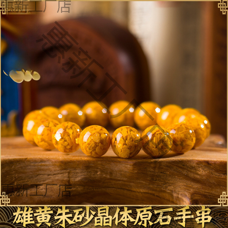 九洲祥雄黄朱砂天然結晶手串原鉱石結晶本命年プレゼントブレスレット男女