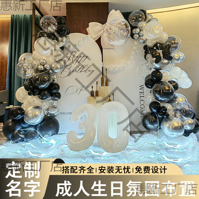 女の子の男性の誕生日の装飾のシーンは夫の18歳の成人の贈り物の風船の室内の背景の壁のkt板を配置します。