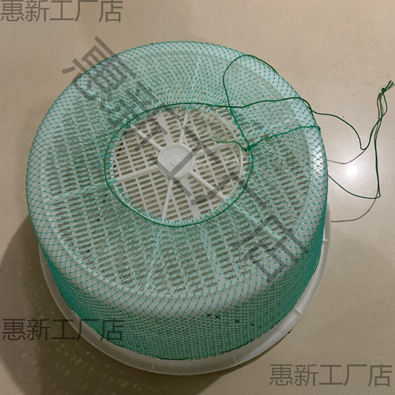 かごの新鮮なカニは網を持って透かし彫りのプラスチックのかごを密封してエビのおばあさんの枠の水産の収納かごの円形の漁網のかごを密封します。