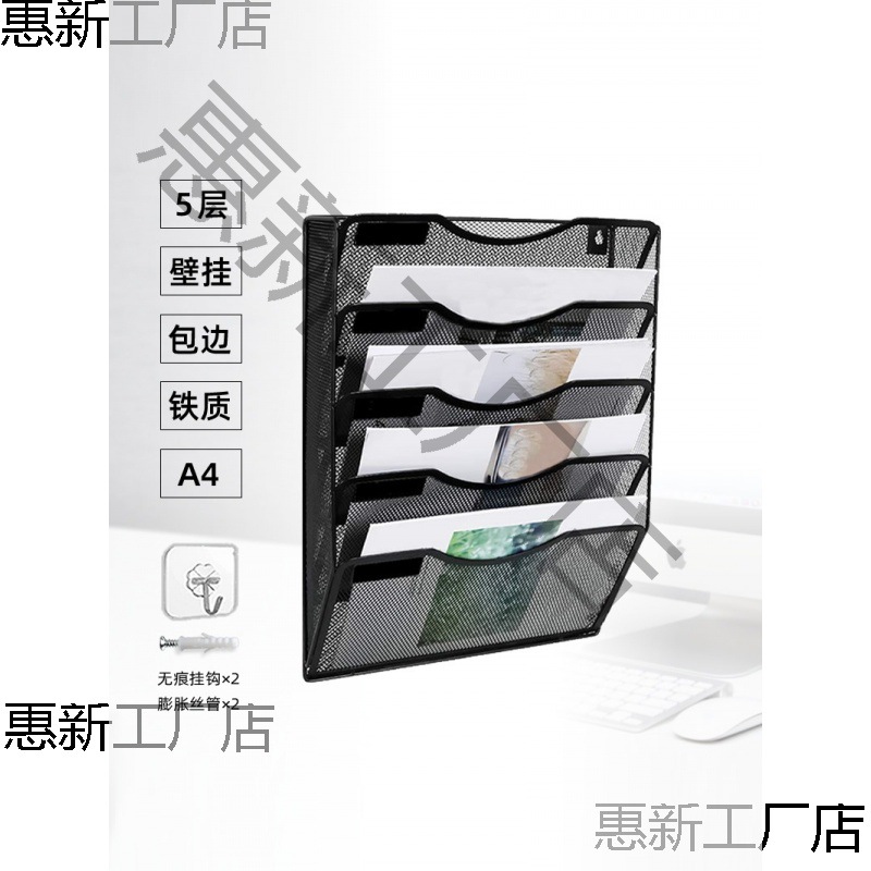壁掛け式ファイルラック壁掛け本棚資料ファイル棚金属雑誌新聞透かし彫り多層黒色