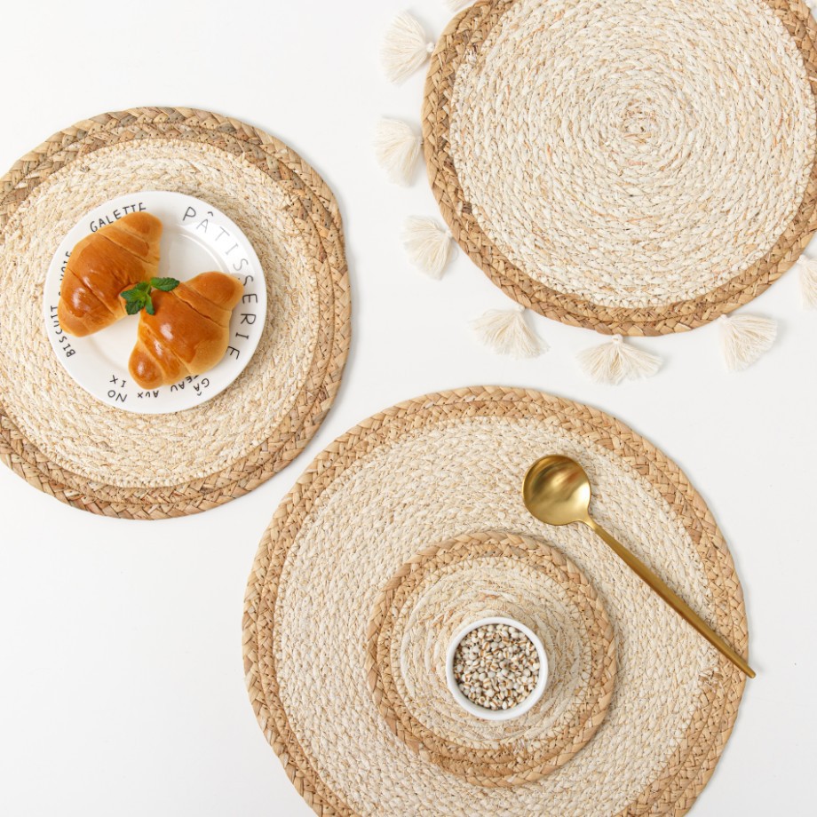 和風家庭用天然トウモロコシの皮わらプレースマット増粘断熱ティーマットテーブルマット耐熱キャセロールプレートマット