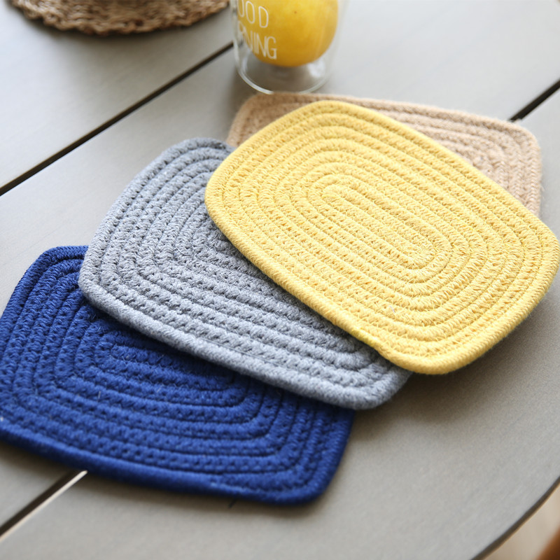 ファブリックコットン糸ダイニングテーブルマット、ボウルマット、耐熱断熱マット、ポットマット、コットンロープ編みコースター、ダイニングマット、断熱・火傷防止