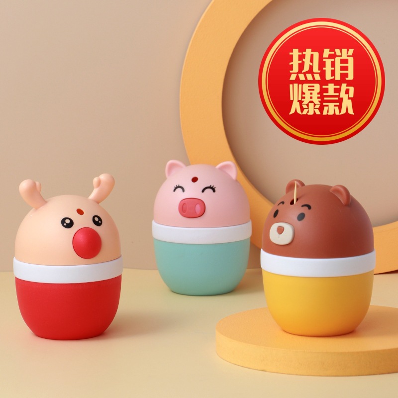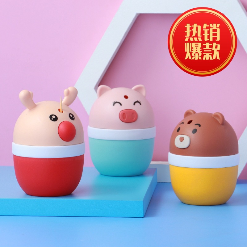 1688漫画かわいいヘラジカつまようじボックスクリエイティブプッシュ式つまようじホルダーホームホテルつまようじ瓶つまようじバケツつまようじボトル