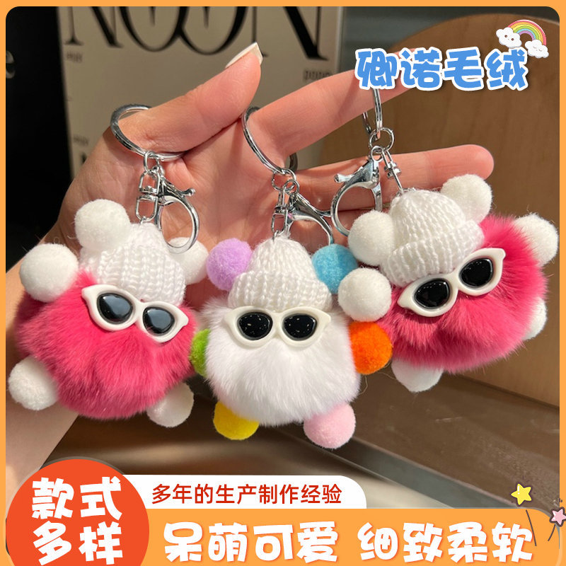 卸売りのかわいいウサギの毛の小さい石炭のボールの自動車のキーホルダーは韓国のinsネットの赤い毛のボールを掛けて小さい贈り物を飾ります。