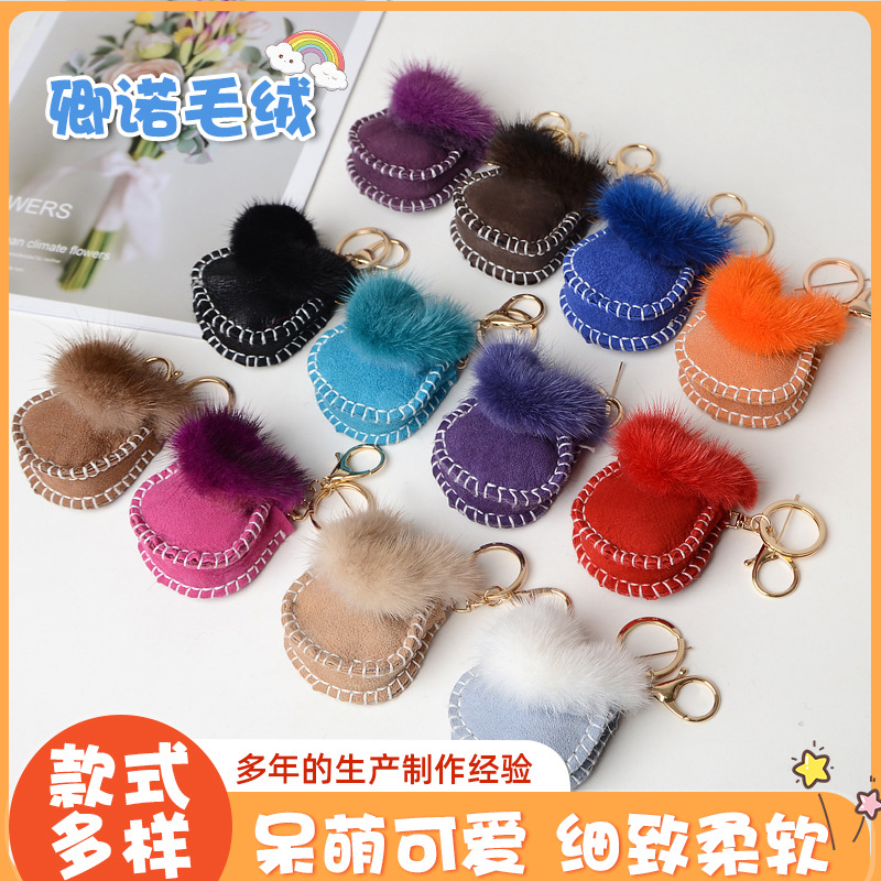 ネットの赤いかわいい小さい包みの真のウールのミンクの毛の自動車のキーホルダーのペンダントの個性の高級な毛の毛の包みは飾りをつけます。