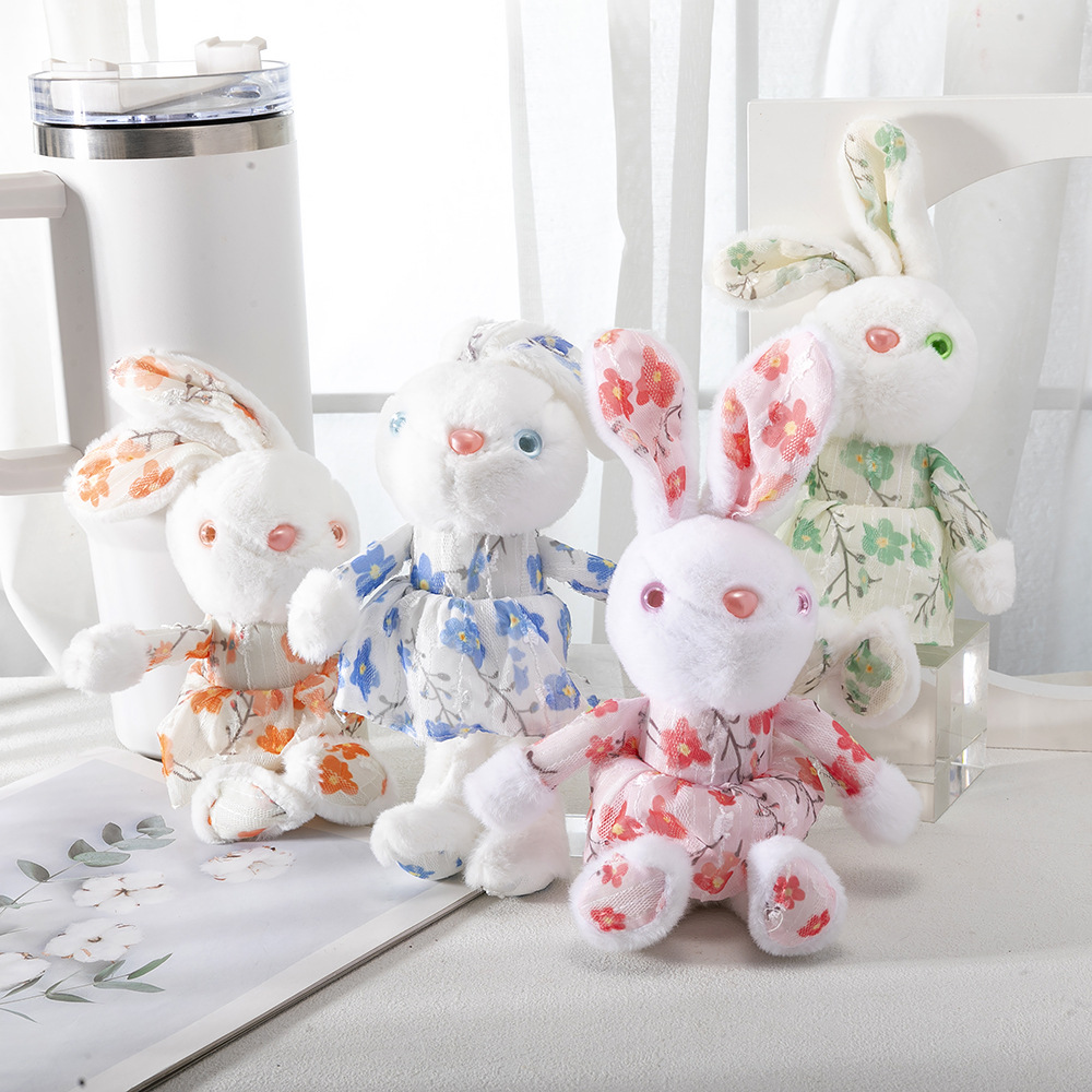 逸品の花のスカートのウサギのぬいぐるみのミニの白いウサギのぬいぐるみは無料です。