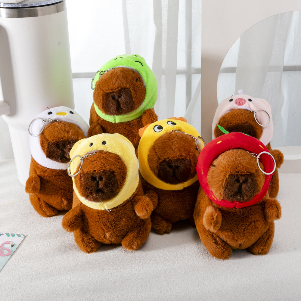 カピバラのぬいぐるみが可愛いカピバラのバッグに飾られています。