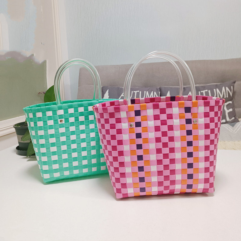 人気ファッションモデルの野菜かご編みバッグプラスチック製の手提げ婦人カバン料理かご休暇バッグお土産バスケット