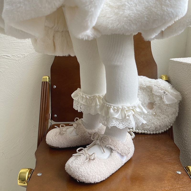 Hotmoon秋冬新作愛真珠植毛蝶結び編み子供学生木耳元靴下カバー足カバー