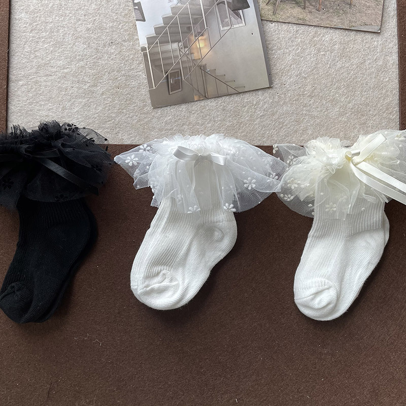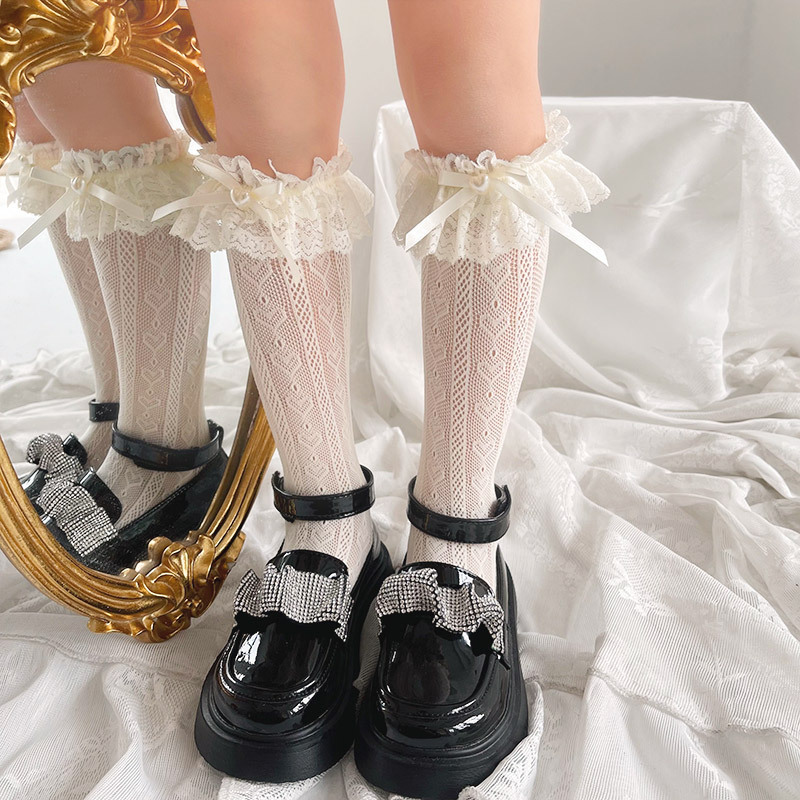 Hotmoon日系新商品愛リボンビーズ女の子赤ちゃんかわいいレース中筒スタッキングソックス