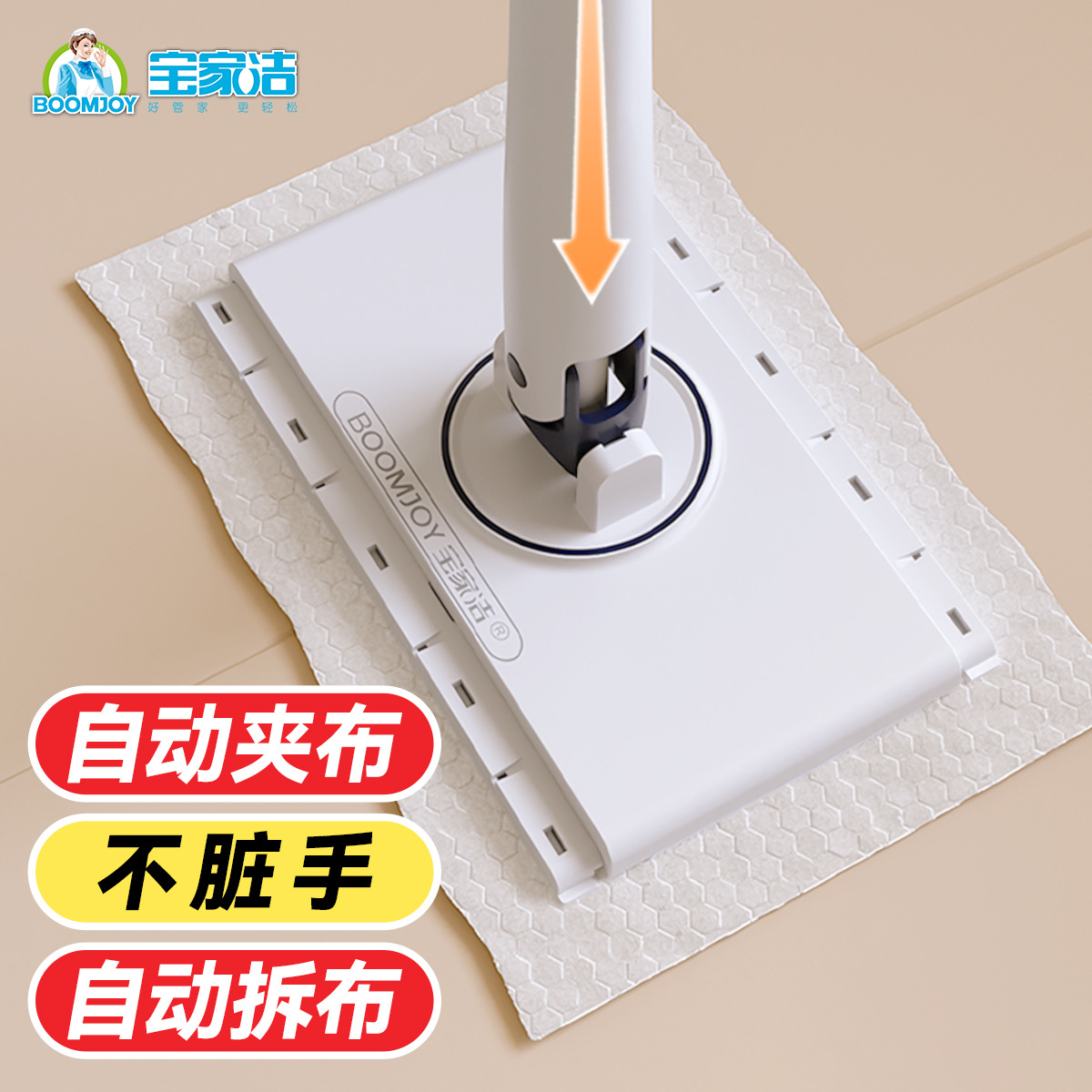 宝家洁超極細繊維手洗い不要スクエア型フラットモップ、乾湿両用、手洗い不要、怠け者向けモップ