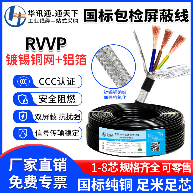 シールド線rvvp単芯0.3 0.5 0.75平方銅線信号制御国標保護ケーブルケーブル