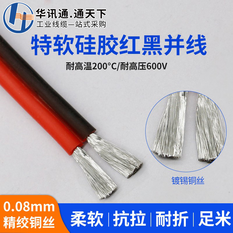 高温耐性の非常に柔らかいシリコン線、2芯、0.5/0.75/2/4平方AWG、平行バッテリー、赤と黒のダブル平行線