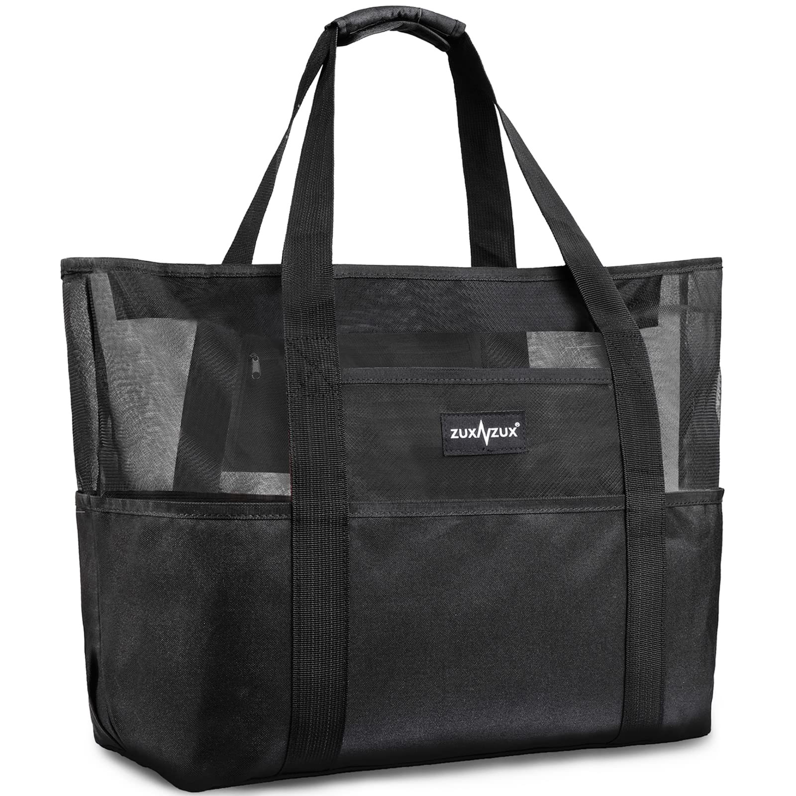 現物メッシュビーチハンドバッグビッグバッグ2023アップグレードレディース多ポケット付き家族旅行水泳に最適