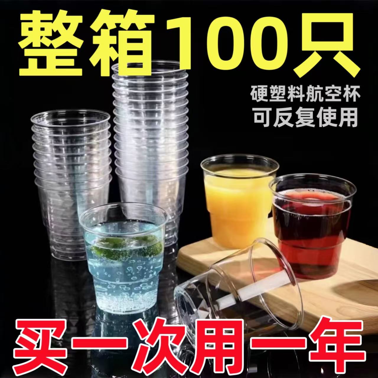 航空カップ使い捨てカップ硬質水カップ食品級ハードプラスチック透明グラスは家庭用クリスタルカップを厚くして硬い
