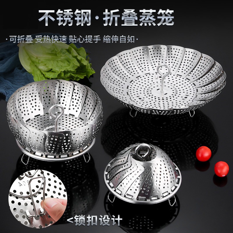 新型304ステンレス蒸し器 多機能伸縮蒸し籠 家庭用蒸し餃子用 厚型大型水切り蒸し皿