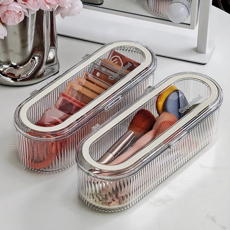 化粧ブラシ収納ボックス、高級パウダーパフブラシ、ビューティーエッグドレッシングテーブル、カバー付きデスクトップ、防塵アイブロウペンシルブラシ収納ボックス