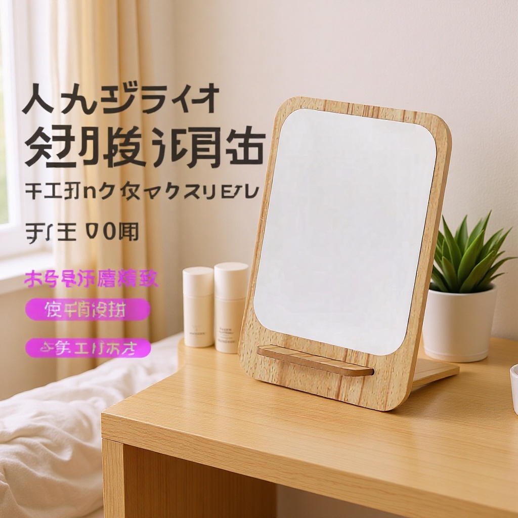 木製化粧鏡 ミラー 化粧鏡 学生寮 デスクトップ ポータブル折りたたみミラー スタンド付き ひまわり木製ミラー