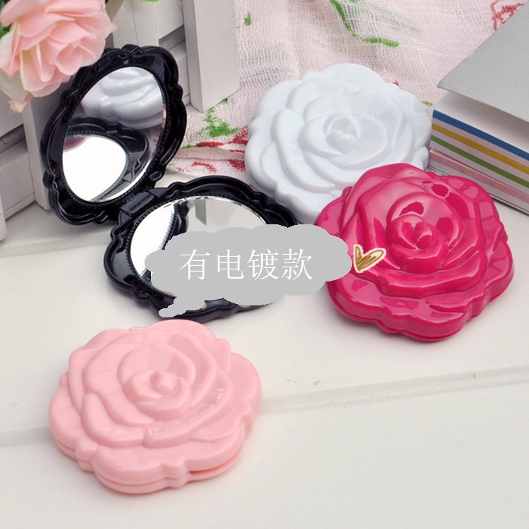 プラスチックのバラの花の折り畳みの円形の魔鏡の化粧鏡の両面の立体の化粧の小さい鏡のメーカーは卸売りします。