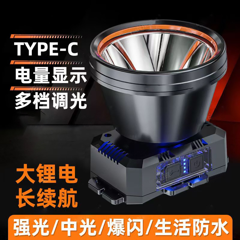 LED誘導ヘッドライト懐中電灯の強い光が遠射で爆発して、充電可能な超明るい夜の釣り灯の屋外家庭用鉱山灯があります。