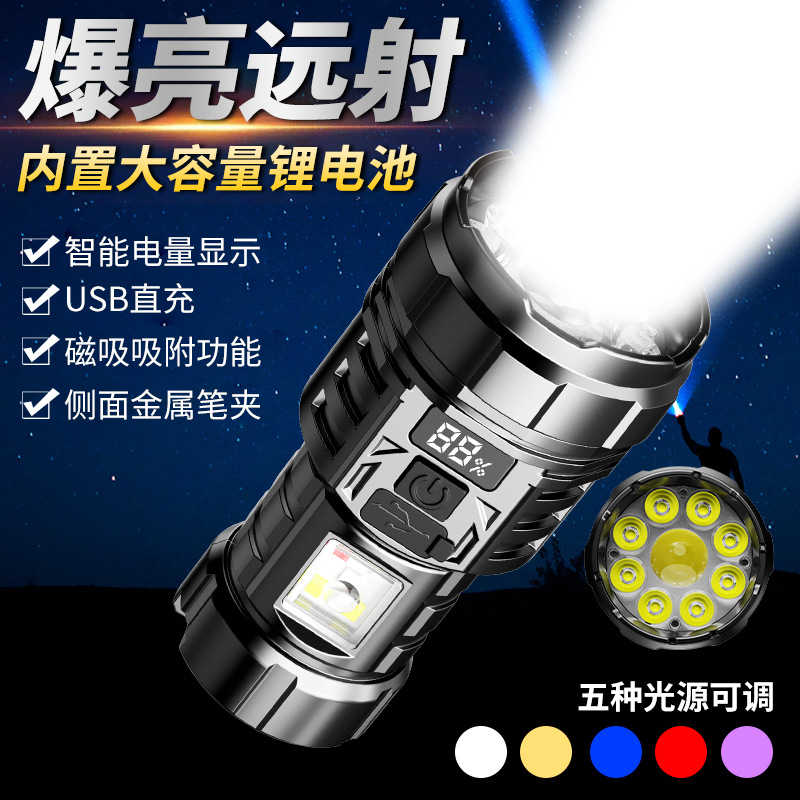 新型クロスボーダー懐中電灯強光多機能遠射携帯型ミニ充電デジタル表示懐中電灯