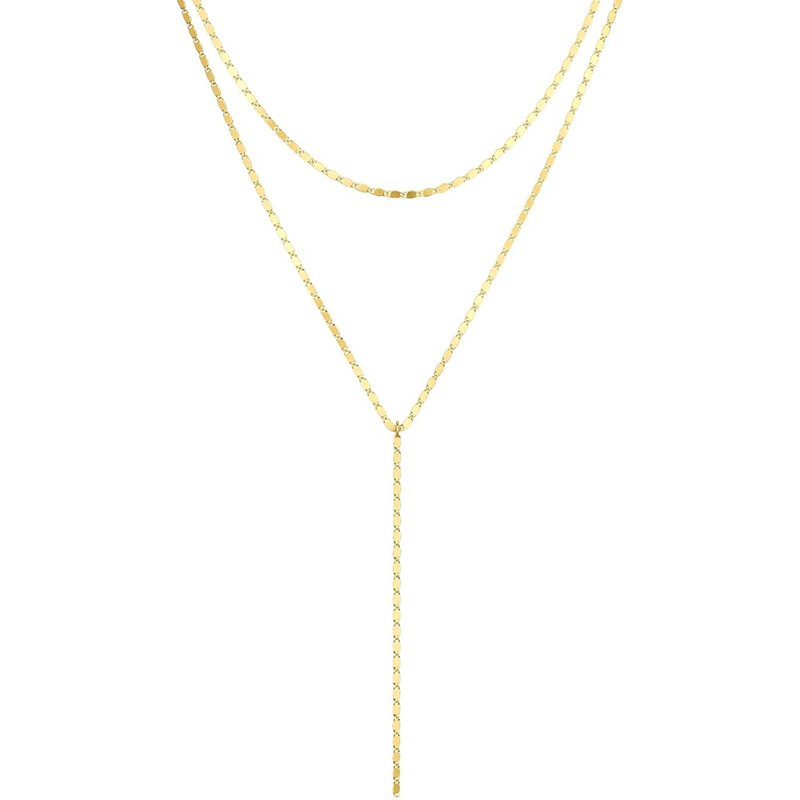 クロスボーダー レディース 14K ゴールドメッキ フレンチ ダブルレイヤー タッセル ファッショナブルで多用途なハイエンド鎖骨チェーン ネックレス