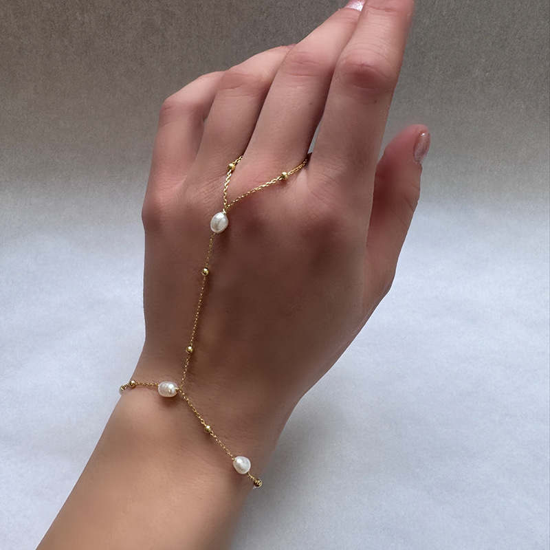 クロスボーダーパールフィンガーリングブレスレットゴールドビーズスレーブチェーンブレスレットウェディングパールリングブレスレットヴィンテージパールブレスレット