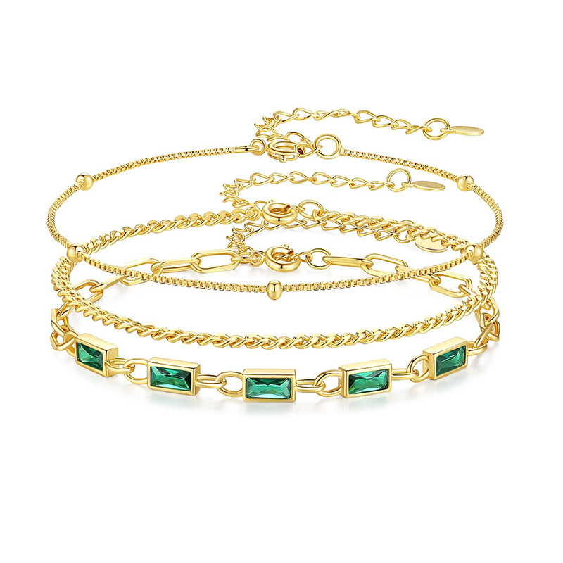 クロスボーダー女性ゴールデン誕生石ブレスレット 14K ゴールドメッキレイヤードブレスレットセット女性の絶妙な積み重ね可能なブレスレット