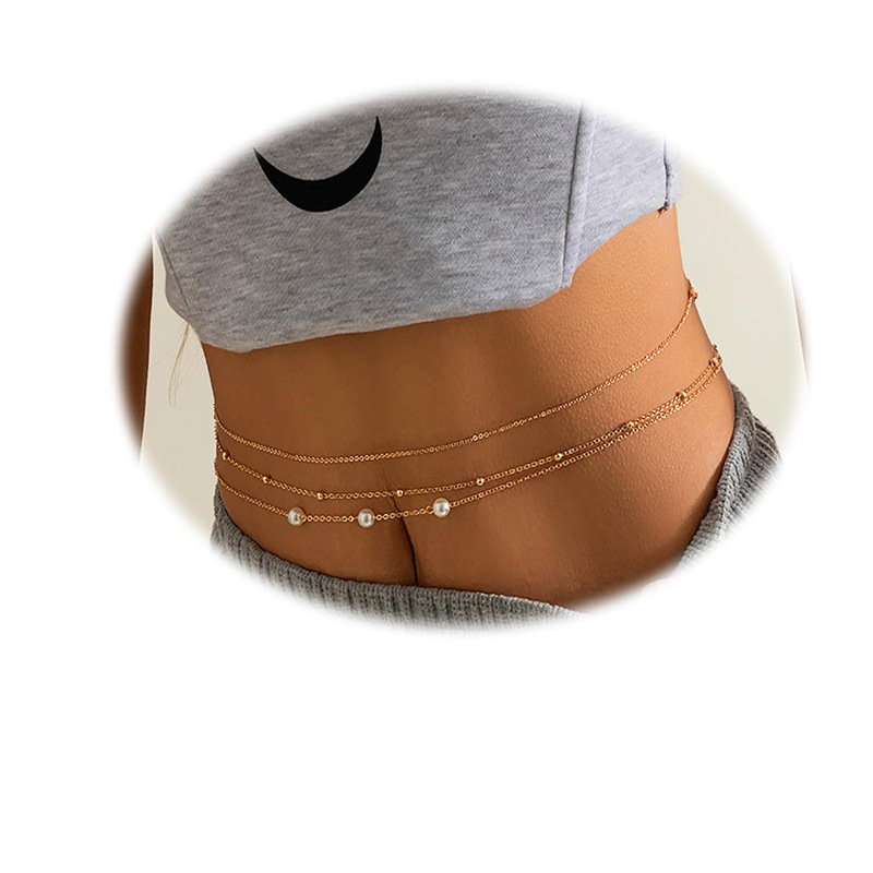 2 個 25-44.8inch K ゴールドメッキウエストチェーンミニマリストパールベリーチェーンゴールデンレイヤードセクシービ