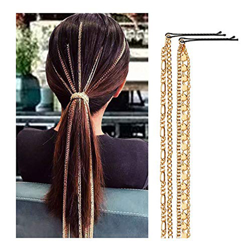 クロスボーダー 2 個パック パンク メタル ゴールド ハート タッセル ポニーテール マルチストランド ヘアチェーン クリップ付き 女の子用