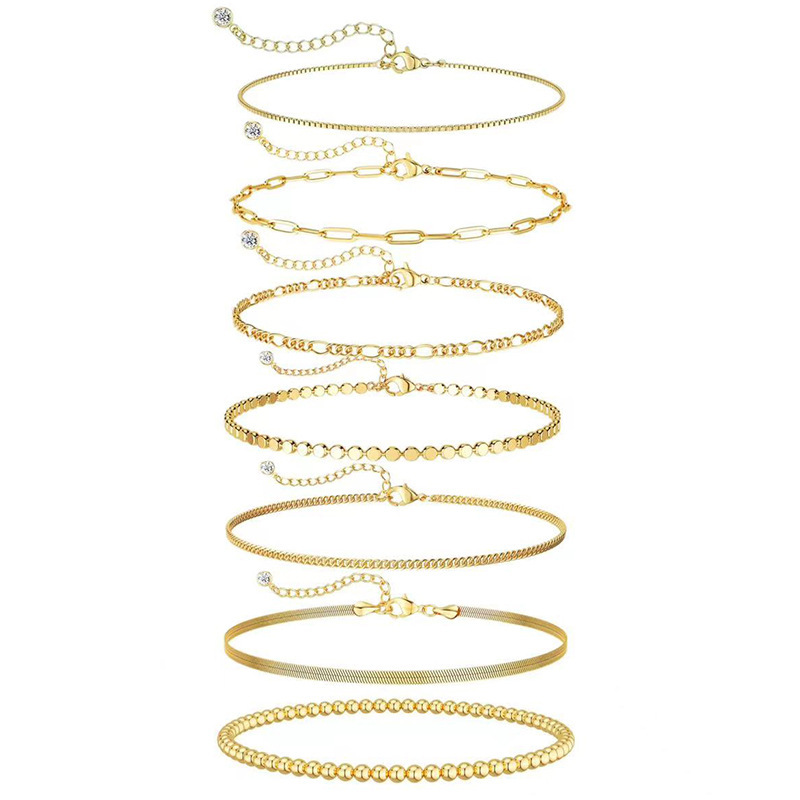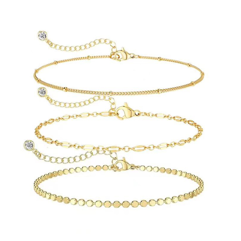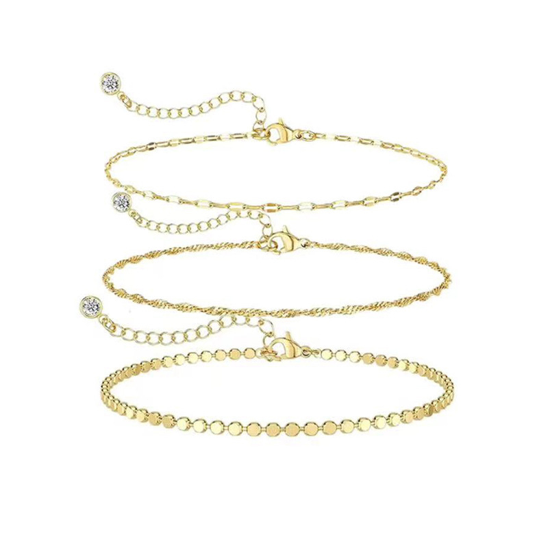 クロスボーダー女性 14K ゴールドメッキ女性ジュエリーセットファッション防水積み重ね可能な薄型繊細なブレスレット女の子のための